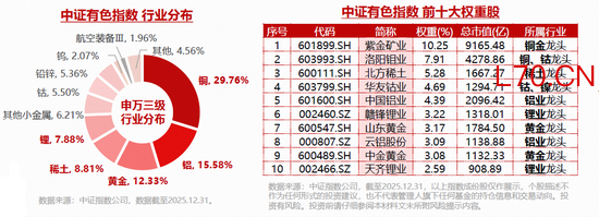 风险提示:有色ETF华宝被动跟踪中证有色金属指数,该指数基日为2013.12.31,发布于2015.7.13,指数成份股构成根据该指数编制规则适时调整,其回测历史业绩不预示指数未来表现。本文中指数成份股仅作展示,个股描述不作为任何形式的投资建议,也不代表管理人旗下任何基金的持仓信息和交易动向。基金管理人评估的该基金风险等级为R3-中风险,适宜平衡型(C3)及以上的投资者,适当性匹配意见请以销售机构为准。任何在本文出现的信息(包括但不限于个股、评论、预测、图表、指标、理论、任何形式的表述等)均只作为参考,投资人须对任何自主决定的投资行为负责。另,本文中的任何观点、分析及预测不构成对阅读者任何形式的投资建议,亦不对因使用本文内容所引发的直接或间接损失负任何责任。基金投资有风险,基金的过往业绩并不代表其未来表现,基金管理人管理的其他基金的业绩并不构成基金业绩表现的保证,基金投资须谨慎。