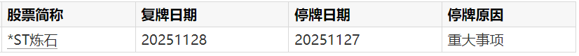 A股复牌提示:1股今日复牌