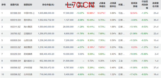 从股价表现来看,这十大重仓股在2025年有八只都在下跌,仅中国中免和美的集团录得上涨。