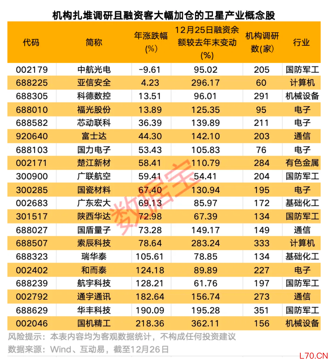 卫星产业链公司出炉 20只机构扎堆调研个股获融资客大幅加仓