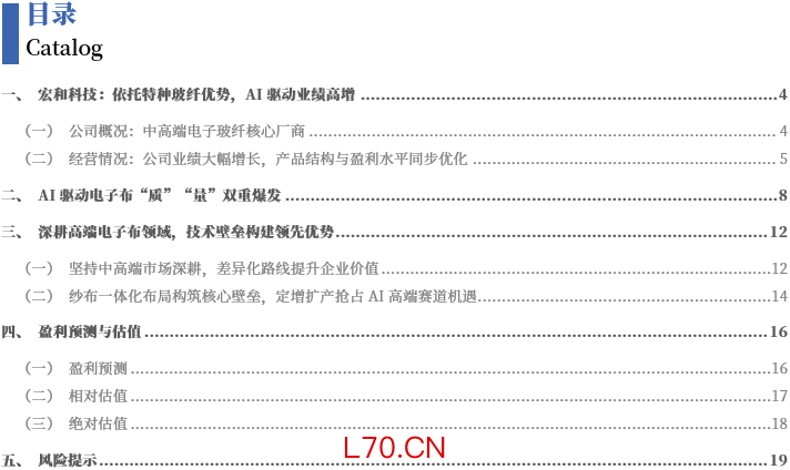 深耕高端电子布领域,定增扩产抢占AI高端赛道机遇。公司坚持中高端产品市场深耕,营业收入长期以中高端产品为主。随着PCB行业持续高端化,高端电子玻纤有望成为公司业绩增长的核心支撑,公司凭借长期积累的技术优势、客户资源优势,叠加高端电子布高毛利率特点,整体毛利中枢有望持续上移,驱动公司业绩增速领跑行业。与此同时,公司定增募投的高性能玻纤纱产线建设项目已启动,随着后续高性能特种玻纤产品的陆续放量,将助力公司快速抢占高端电子布市场,提升公司产品竞争力和市场占有率。