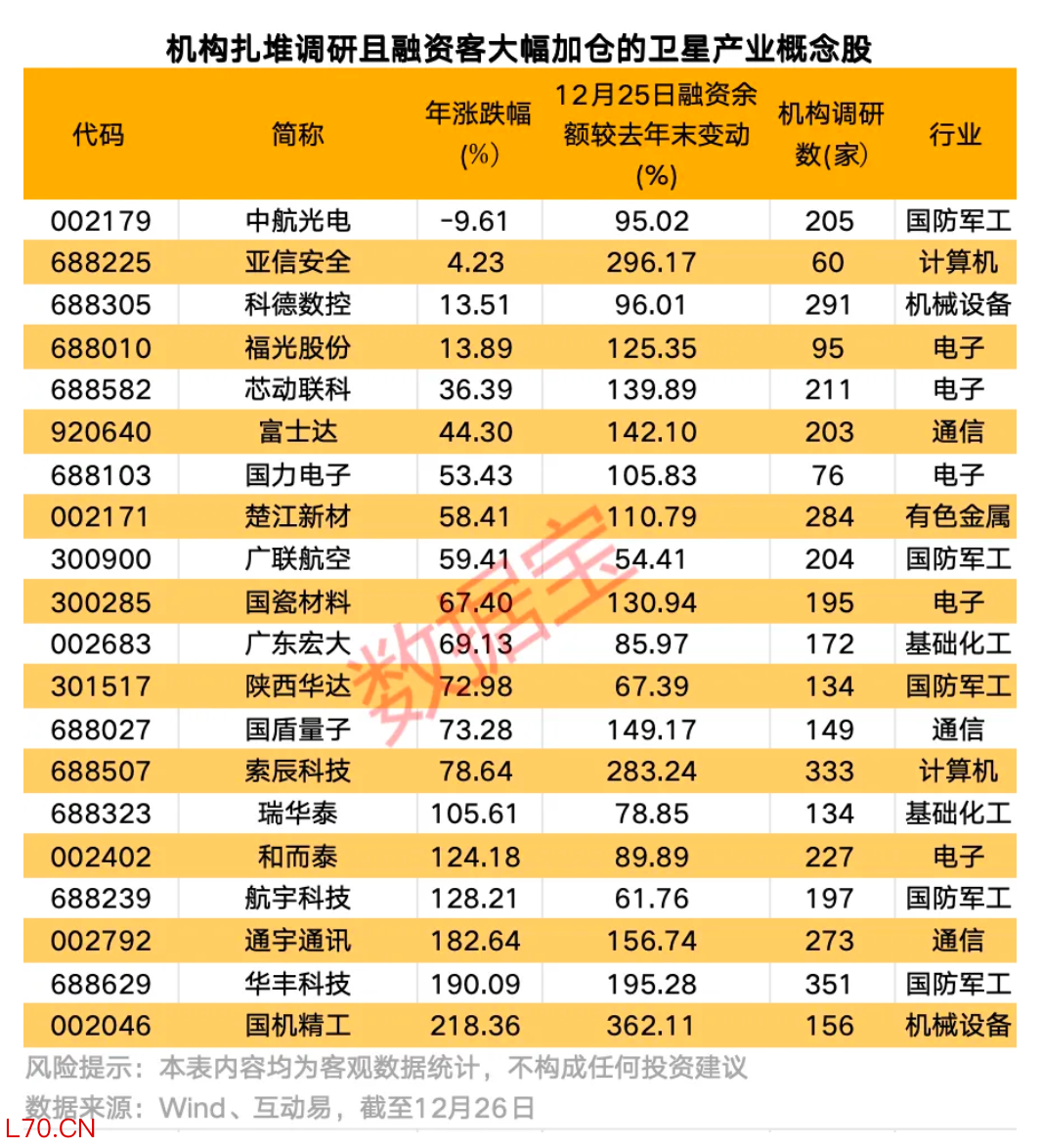 卫星产业链公司出炉 20只机构扎堆调研个股获融资客大幅加仓